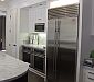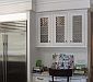 A classic white kitchen remodel in Newport Beach is reminiscent of a Hamptons style kitchen. Featuring an inset door style in cherry for the island with white painted perimeter cabinets... sparkle with polished nickel hardware and diamond cut grilles in the desk area. This hard working kitchen with carrera marble countertops, cooks with side-by-side Thermador ovens, a professional gas cooktop with grill and convection warming drawer from Thermador. For entertaining... This family of four enjoys wine from Sub Zero's under-counter wine refrigerator and then cleans up with Bosch. Before and After Photos