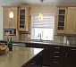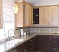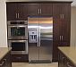 Starting over for this couple meant redesigning their space and tearing down their existing home and rebuilding the entire home. One of their main requisites for this new construction was to create a great room feel for their central hub and entertaining area. To balance the lighting in this space we chose to use a combination of natural maple and expresso stained cabinetry. The new kitchen made way for a new Dacor gas cootop, Kitchenaid double ovens and a GE Profile microwave. This couple chills and cleans up with Kitchenaid.
